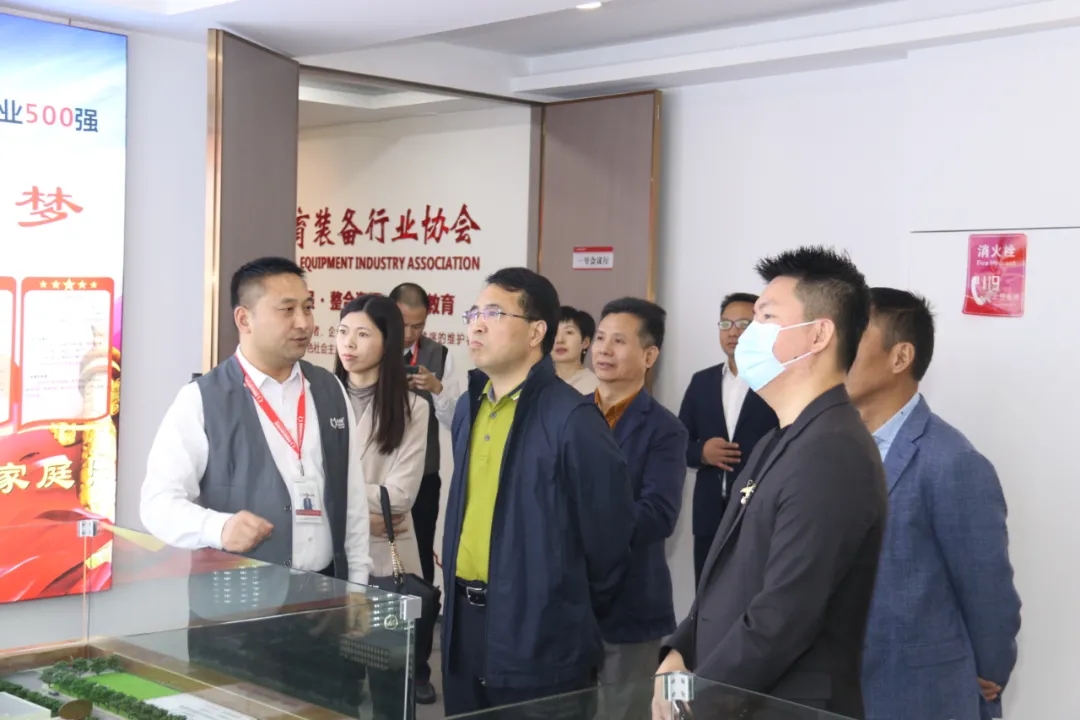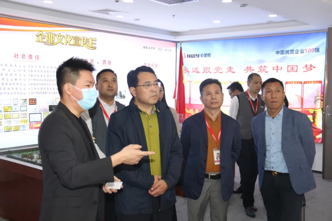 彭国远董事长(左一)陪同匡志镇党委书记(左二)参观优发国际集团