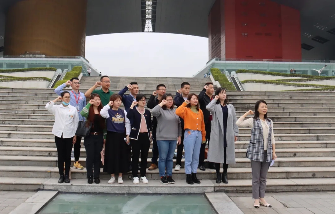 活动伊始,全体党员站在工业展馆门前,面对鲜红的党旗,举起右拳,以昂扬的斗志和饱满的热情,重温入党誓词。“我志愿加入中国共产党,拥护党的纲领,遵守党的章程,履行党员义务,执行党的决定......”铿锵宣誓声在耳边响起,庄严肃穆之情跃然心头。