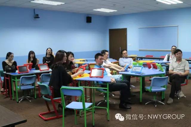 任克雷会长一行在模拟教室体验优发国际智能教育系统