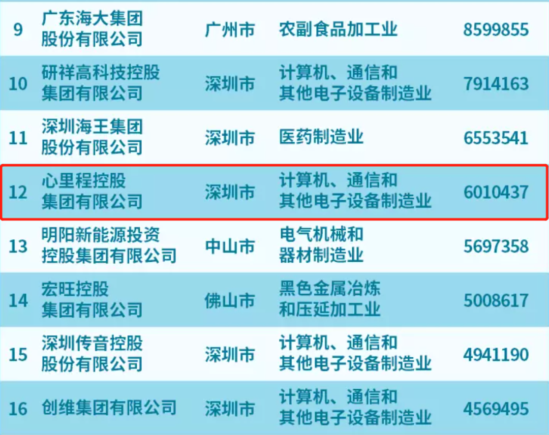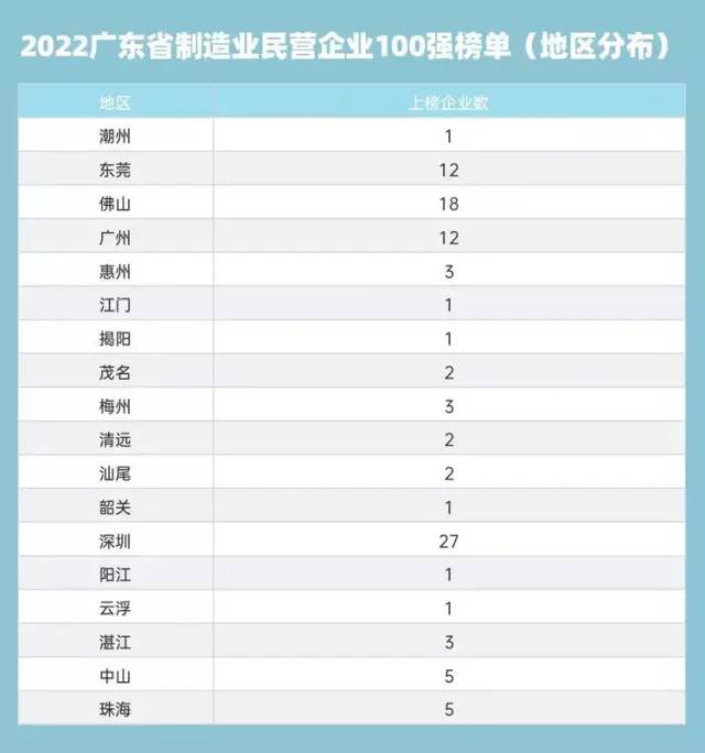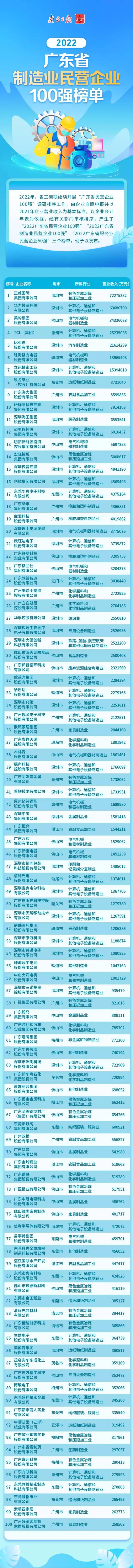 2022广东省制造业民营企业100强