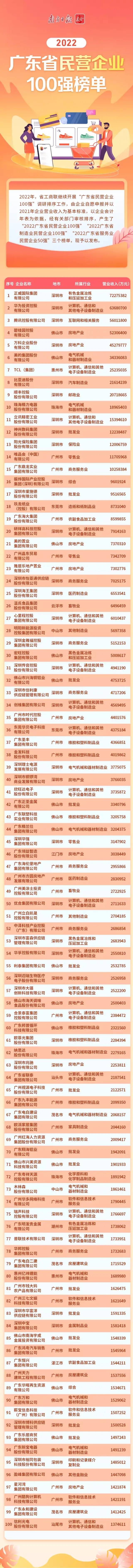 2022广东省民营企业100强