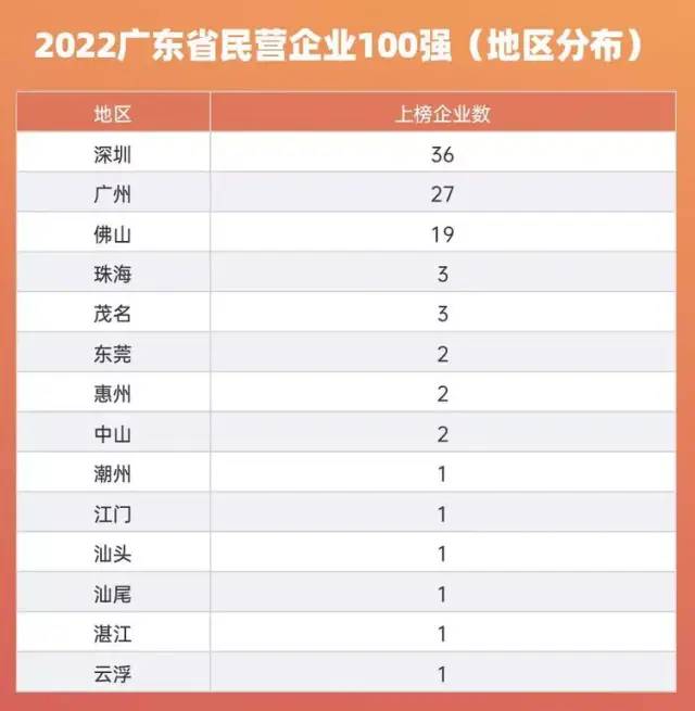 此外,在2022年全国工商联组织的上规模民营企业调研活动中,广东民营企业表现抢眼,共有51家入围2022中国民营企业500强、49家入围中国制造业民营企业500强、18家入围中国服务业民营企业100强,有59家入围2022民营企业研发投入500家榜单、73家入围2022民营企业发明专利500家榜单,入围数均位居全国前列。