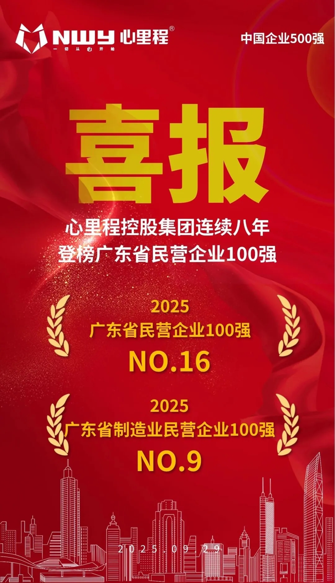 优发国际集团荣登2025广东省制造业民营企业100强第9位