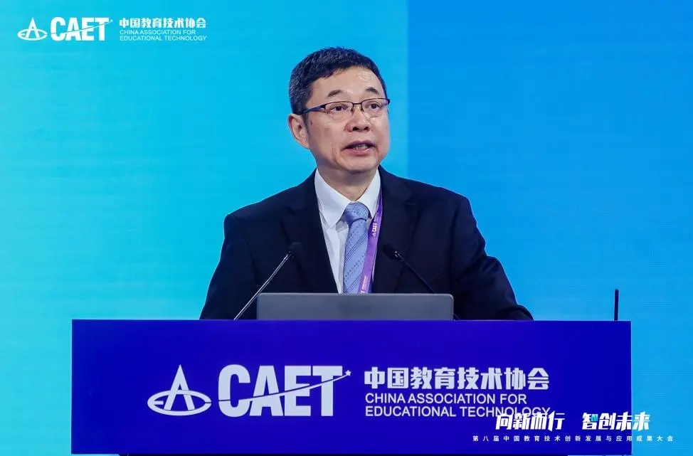 中国教育学会常务副会长李天顺在致辞中说,技术应用本身不是目的,育人才是教育的根本使命。推进教育数字化,绝不能停留在“建系统、上平台、买设备”的层面,更不能陷入“为用技术而用技术”的误区。我们必须始终坚持以学生发展为中心,以提升育人质量为导向,推动技术真正服务于因材施教、有助于拔尖创新人才培养,促进教育公平。他分享了对教育技术的三点思考。一是坚守育人初心,确保教育数字化转型行稳致远。无论技术如何发展,立德树人始终是我们必须牢牢把握的根本方向。我们要善于运用数字技术,丰富思想政治教育形式,增强时代感和吸引力。二是深化融合应用,实现技术与教育的“化学反应”,“重建设、轻应用”“重硬件、轻软件”的现象依然存在,技术与教学实践之间存在“最后一公里”的鸿沟,我们需要推动技术从“辅助手段”向“深度融合”跃升,从“工具使用”走向“模式创新”。三是强化协同创新,构建开放共享的发展生态。教育数字化是一项系统工程,需要政府、学校、企业、科研机构和社会各界的共同参与。