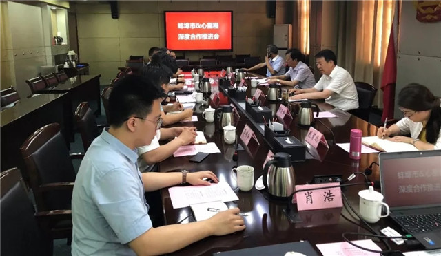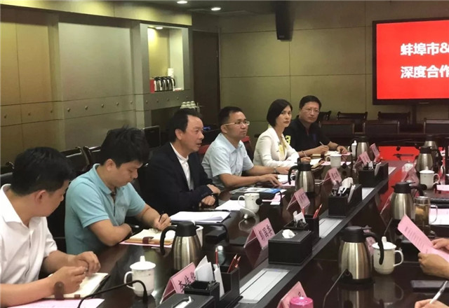 考察首日,王诚市长主持召开了“蚌埠市&优发国际深度合作推进会”,双方就蚌埠市与优发国际集团进一步推进深入合作,进行座谈交流。蚌埠市政府秘书长吴道俊、蚌埠市金融办主任黄平、蚌埠市教育局局长乌兰其其格、蚌埠市文广新局局长袁政、蚌埠市蚌山区副区长沈明举等出席会议。