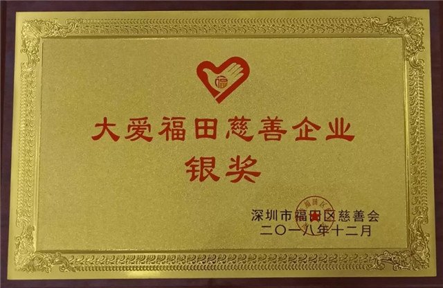福田区慈善会授予优发国际集团“大爱福田慈善企业银奖”