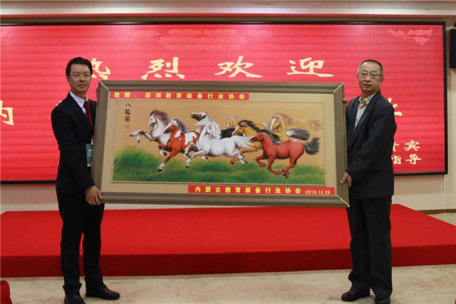 会后,内蒙古教育装备行业协会考察团向深圳教育装备行业协会赠送《八骏图》,彭锦环总裁、会长代表协会接受礼物,并回赠协会纪念品以表达谢意。